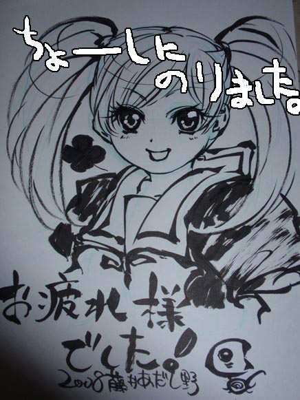 まぁ、本当にただの落書きです。 東映さんの方に書類を送るついでにお手紙がてら描いたのです。 すっかり描き方忘れてたよ……