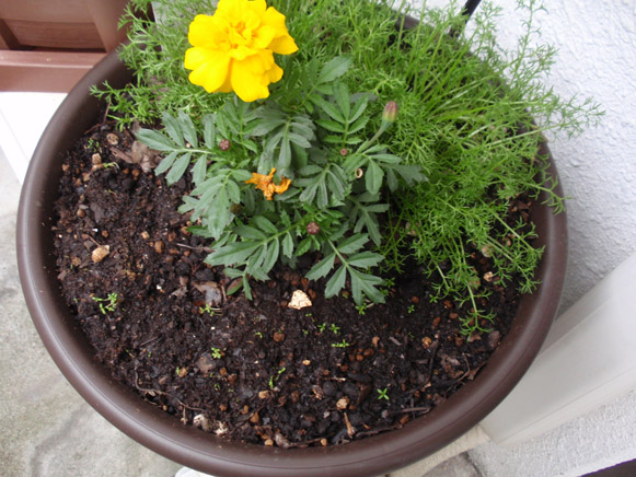 ところでバジルと一緒に植わっていたマリーゴールドは、トマトやカモミールの鉢のもの諸共全滅しました。
