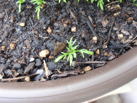 今度はカモミールの鉢のバランスを考えて植え替え&追肥して、バジルのところのマリーゴールドをどうするかを考えなければ…