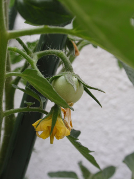 実も出来てきたんですが、これだと苗自体が大きく育つことが出来ないので、このあとできちゃった実を1コずつくら残して花はすべて切り取りました。