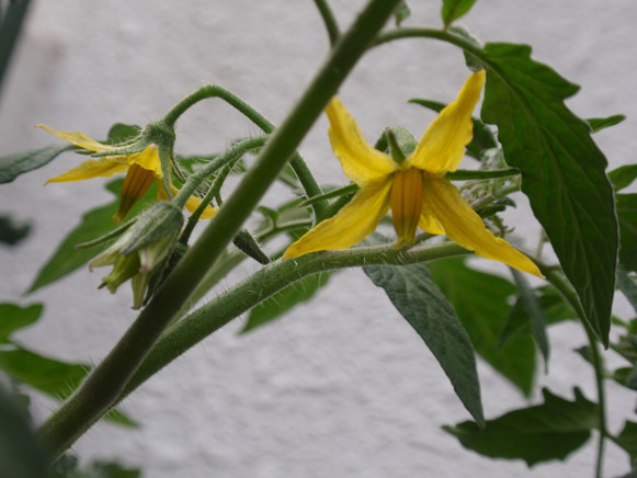 トマト。支柱を立てたらいっぱい花が咲いてきました。